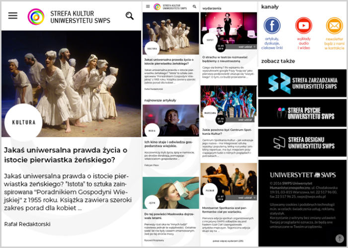 Layout design, development & production for a SWPS University Blog for Strefa Kultur. A mobile and desktop versions.